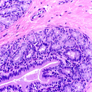 This is a histology slide of the small intestine of a rat. 20X magnification.