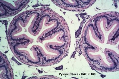 Pyloric ceaca, trout - histology slide